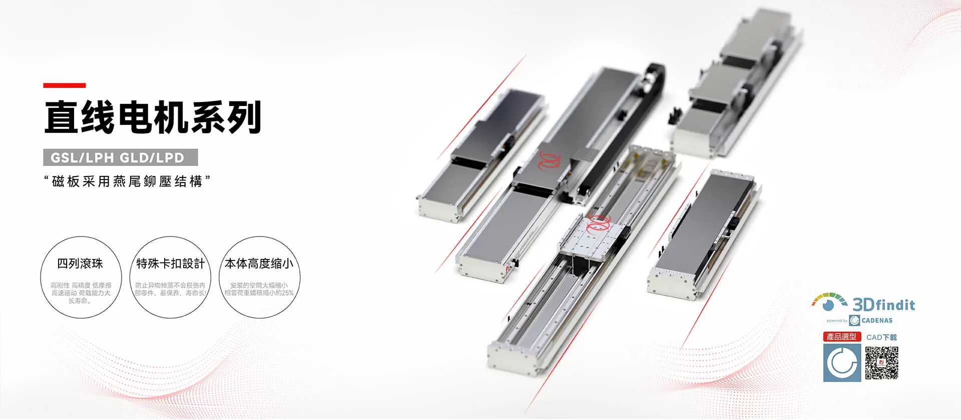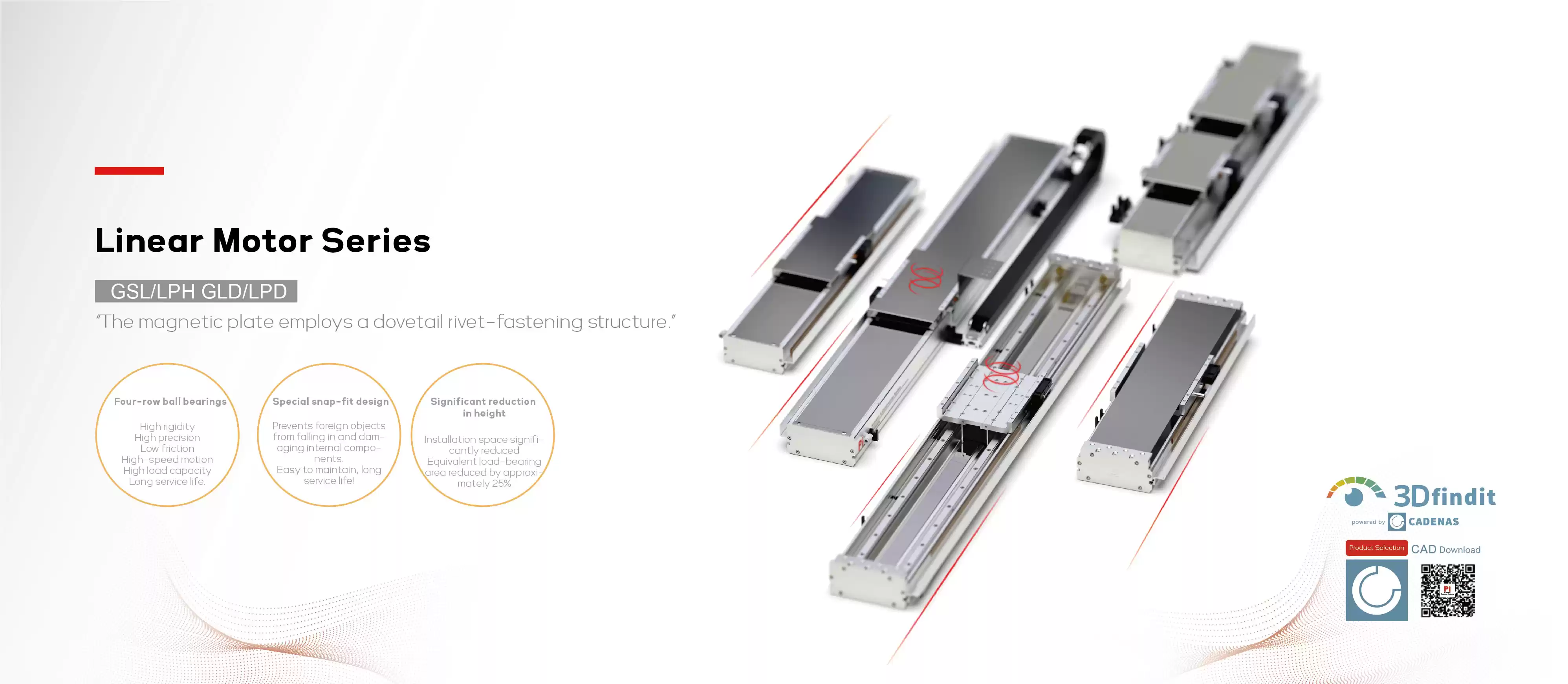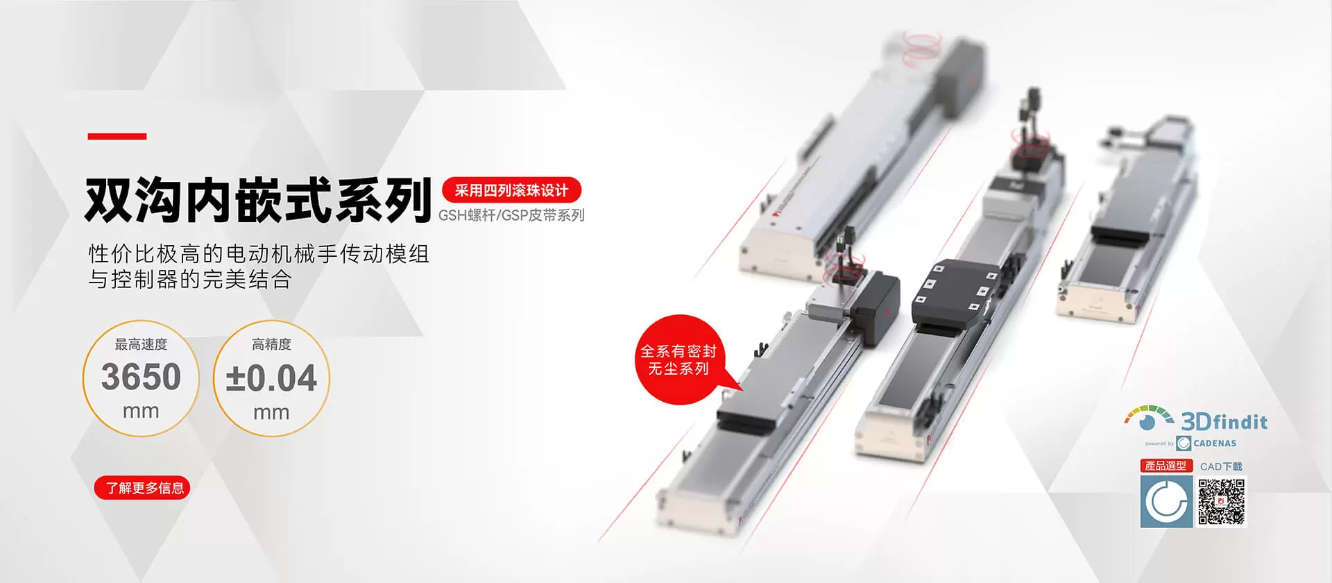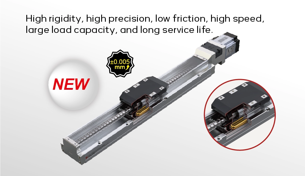 高精度、高効率、強力な耐荷重性を備え、有効荷重は最大150kgです。4列ボール構造、4面力支持