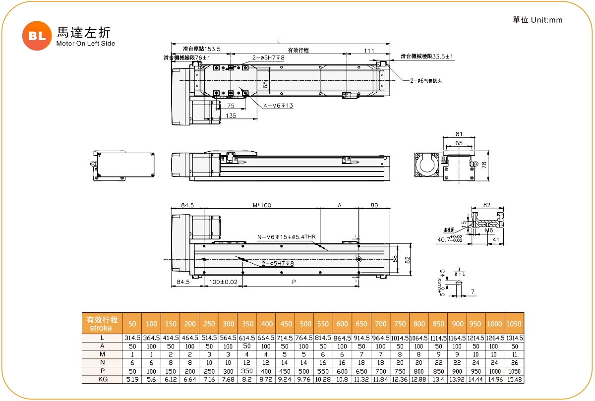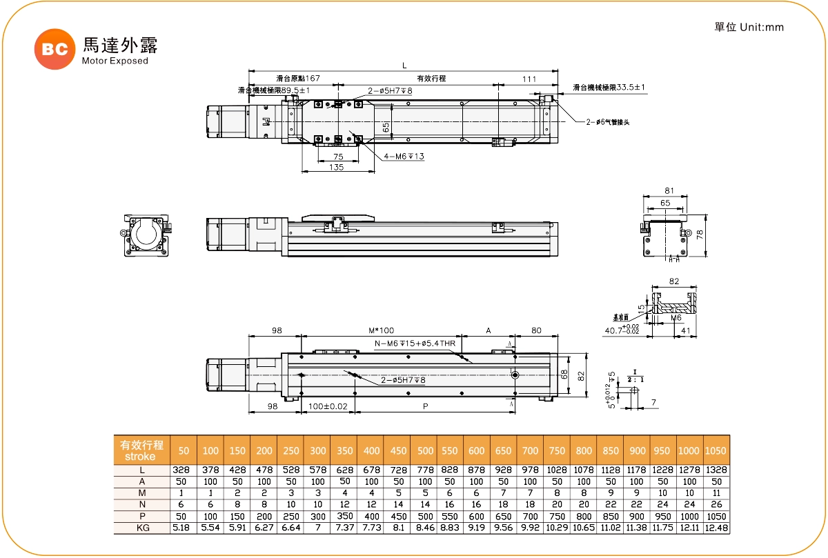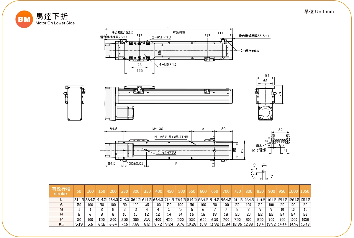高剛性リニアガイド(mm)ボールねじアクチュエータ