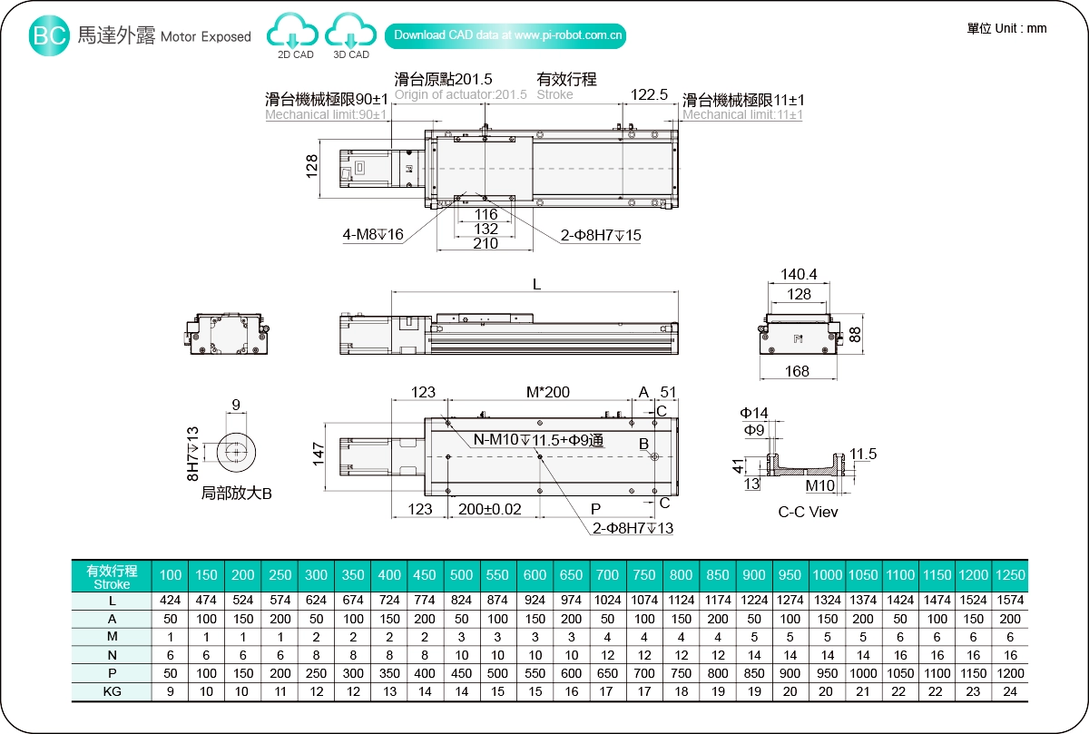 高剛性リニアガイド(mm)ボールねじアクチュエータ