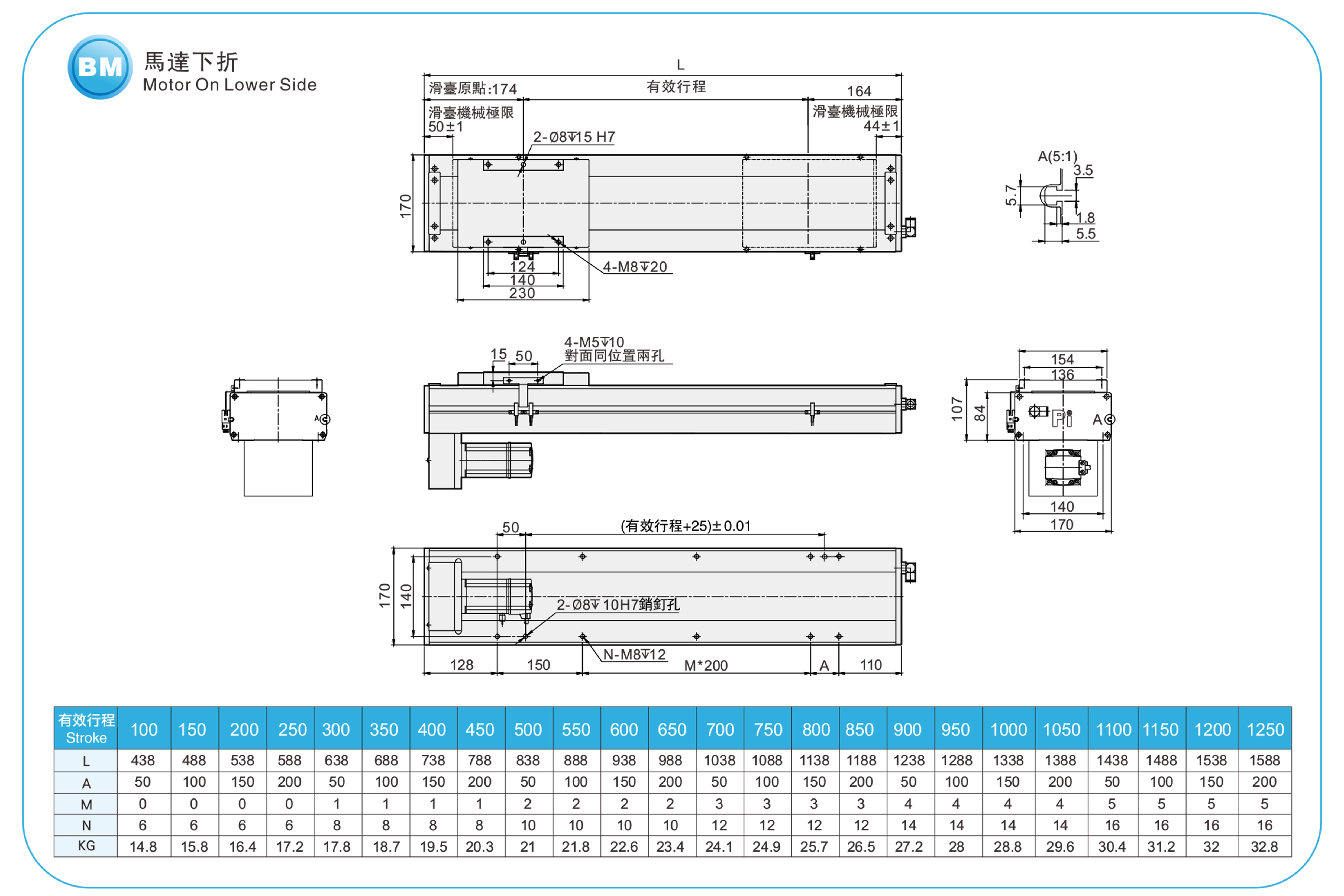 ストロークピッチ(mm)100~1250mm/50mmピッチ