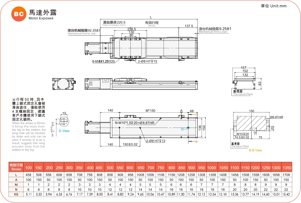 移動範囲:100~1350mm