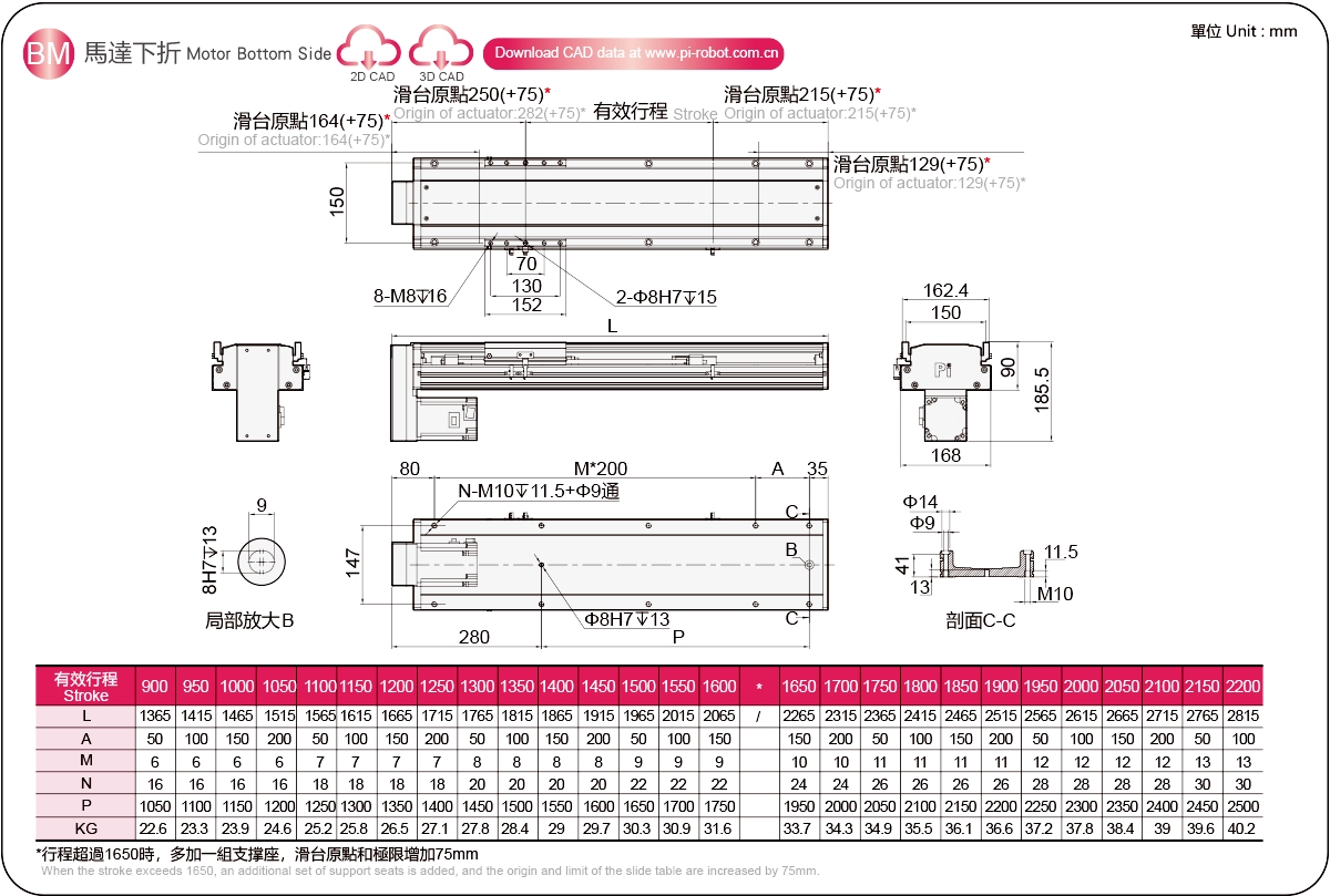 高剛性リニアガイド(mm)ボールねじアクチュエータ