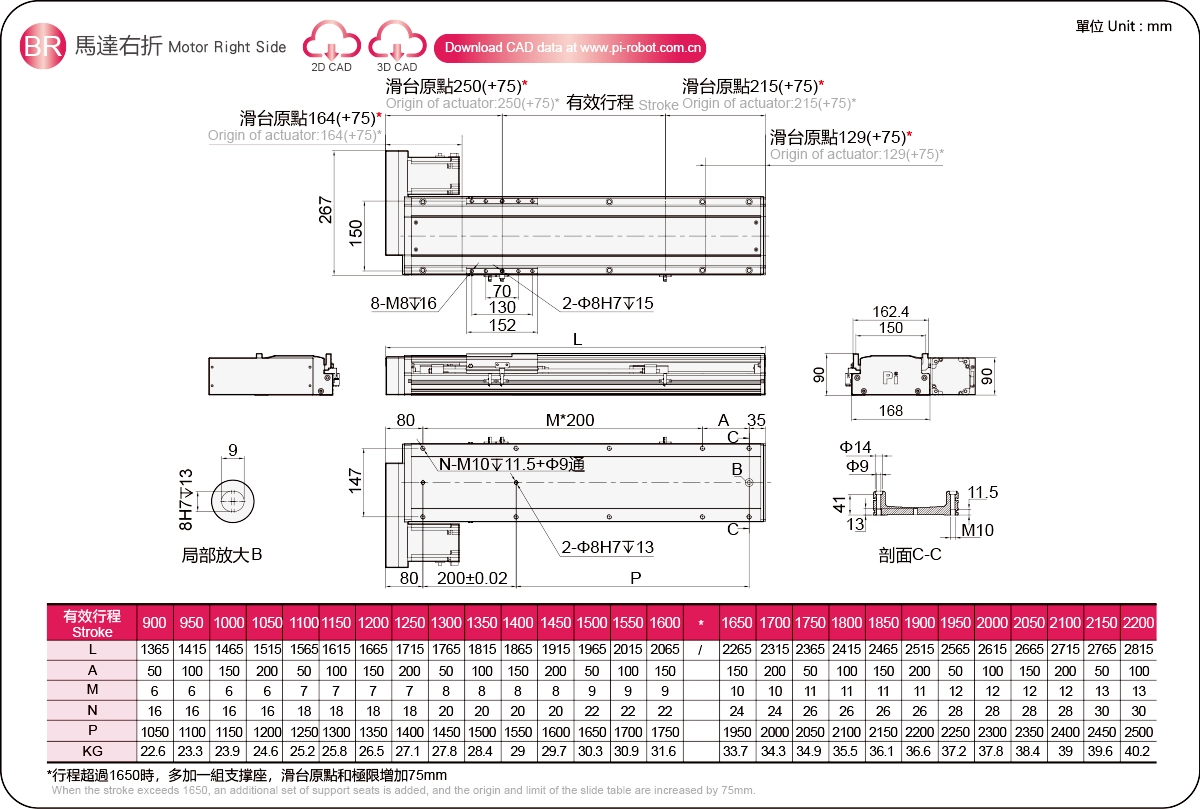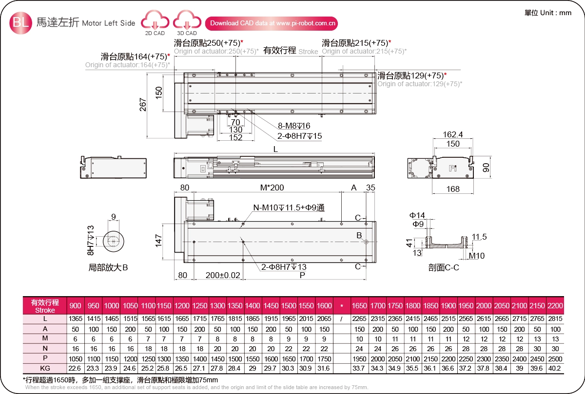 ストロークピッチ(mm)※2100~1250mm/50mmピッチ