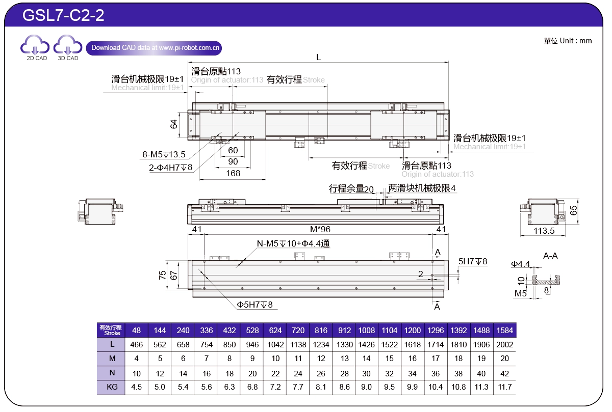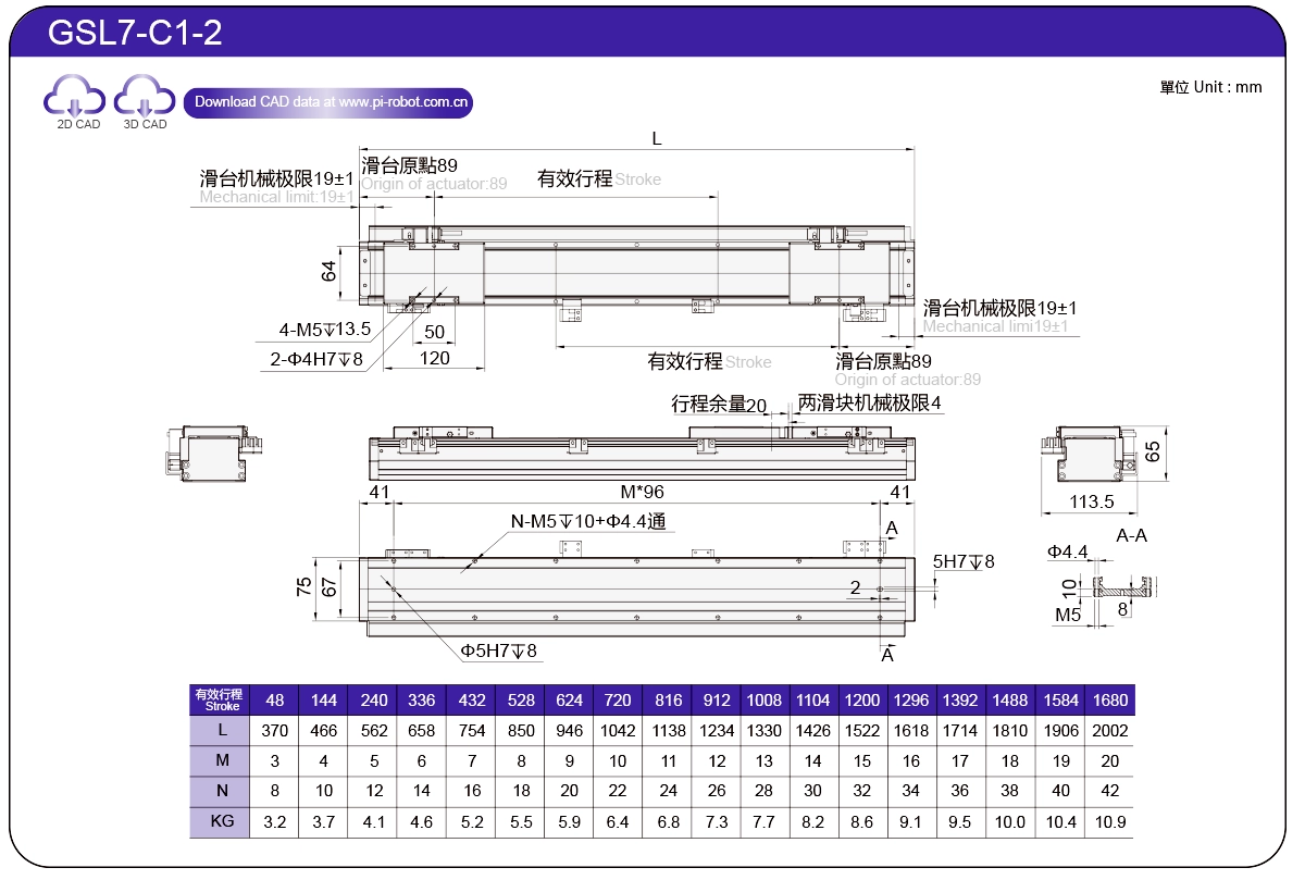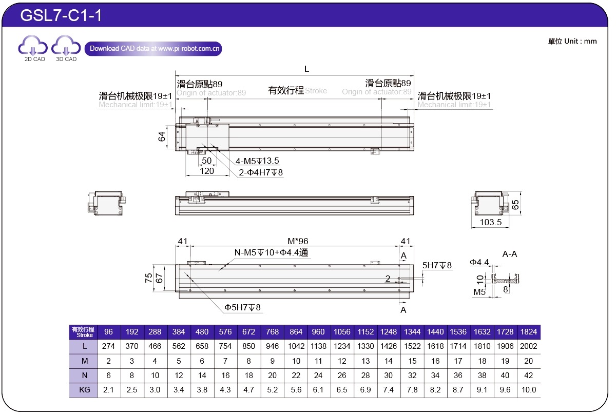 | 使用場所 | 駆動モード | モデル仕様 | モーター仕様 | ボディ幅(mm) | 本体の高さ(mm) | 繰り返し精度(mm) | 連続推力(N) | 最大推力(N) | lrms(A) | 最大積載量(kg) | 最高速度 (mm/秒)*1 |