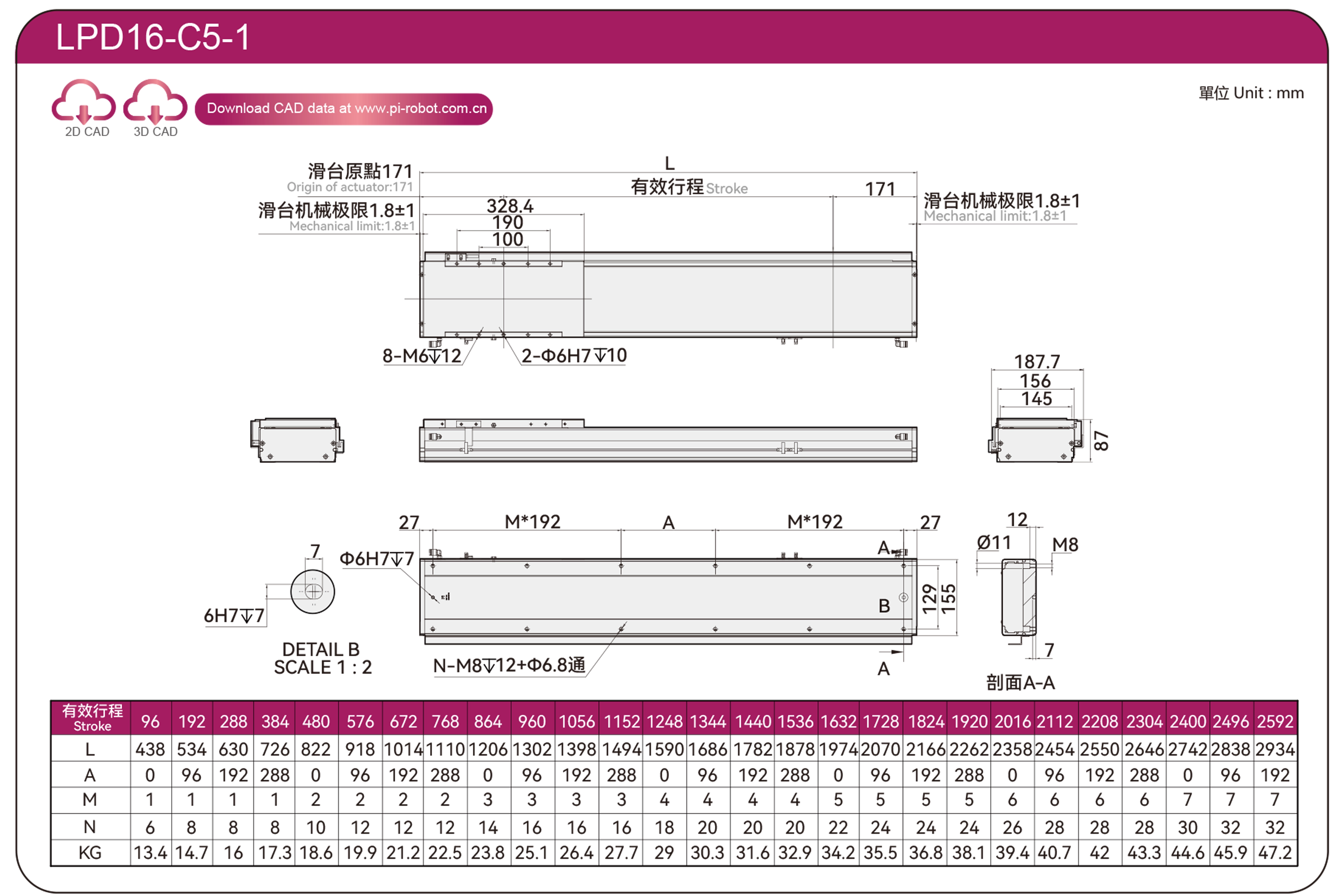 | LPD16 | P64-C3-S | 155 | 87 | ±0.003 | 264 | 580 | 3.3 | 60 | |||