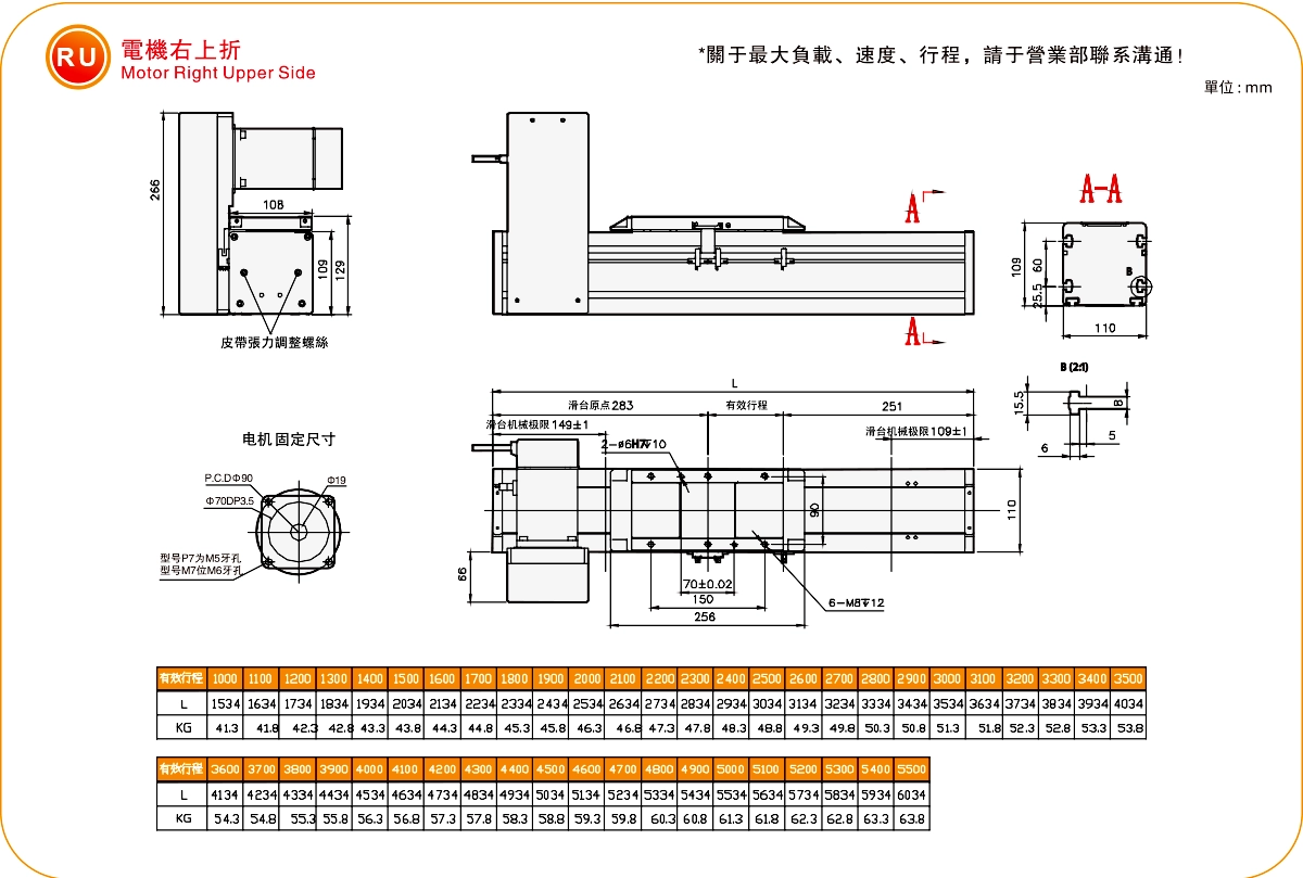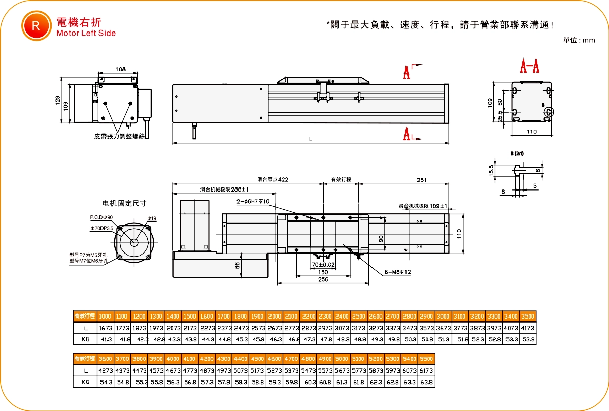 ストロークピッチ(mm)100~5500mm/100mmピッチ