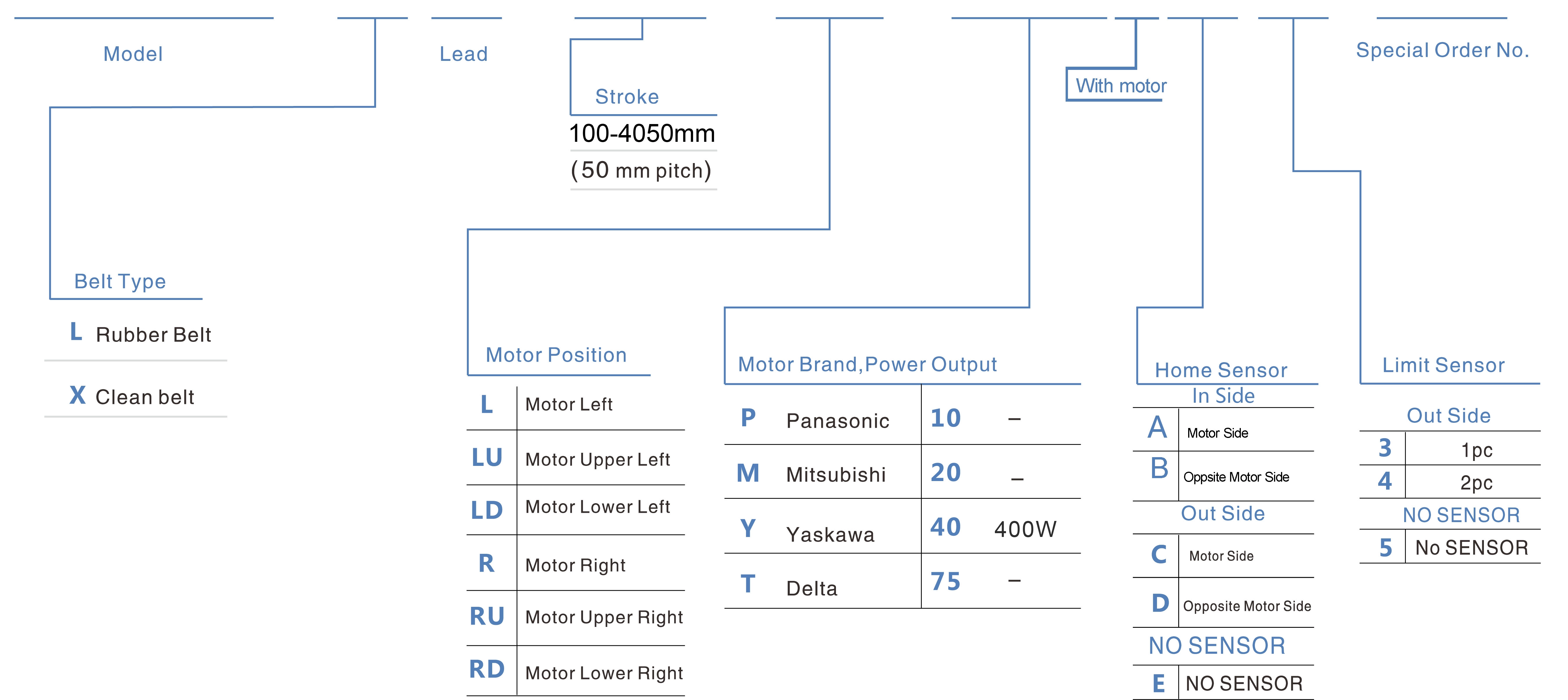 ストロークピッチ(mm)100~4050mm/50mmピッチ