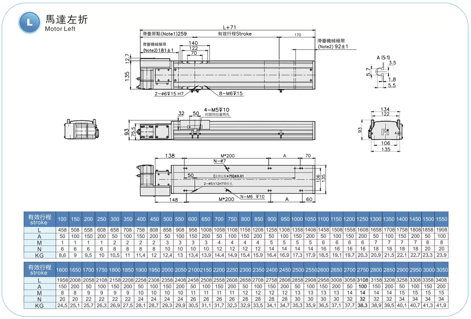 | ストロークピッチ(mm) | 100~3050mm/50mmピッチ | ||