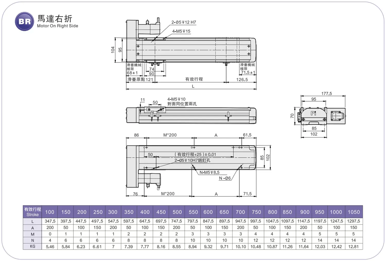 | 使用場所 | 駆動モード | モデル仕様 | モーター出力 (わ) | 幅(mm) | 再現性 (ミリメートル) | ボールねじ仕様 | 最大積載量(kg) | 最高速度 (mm/秒)*1 | ||
