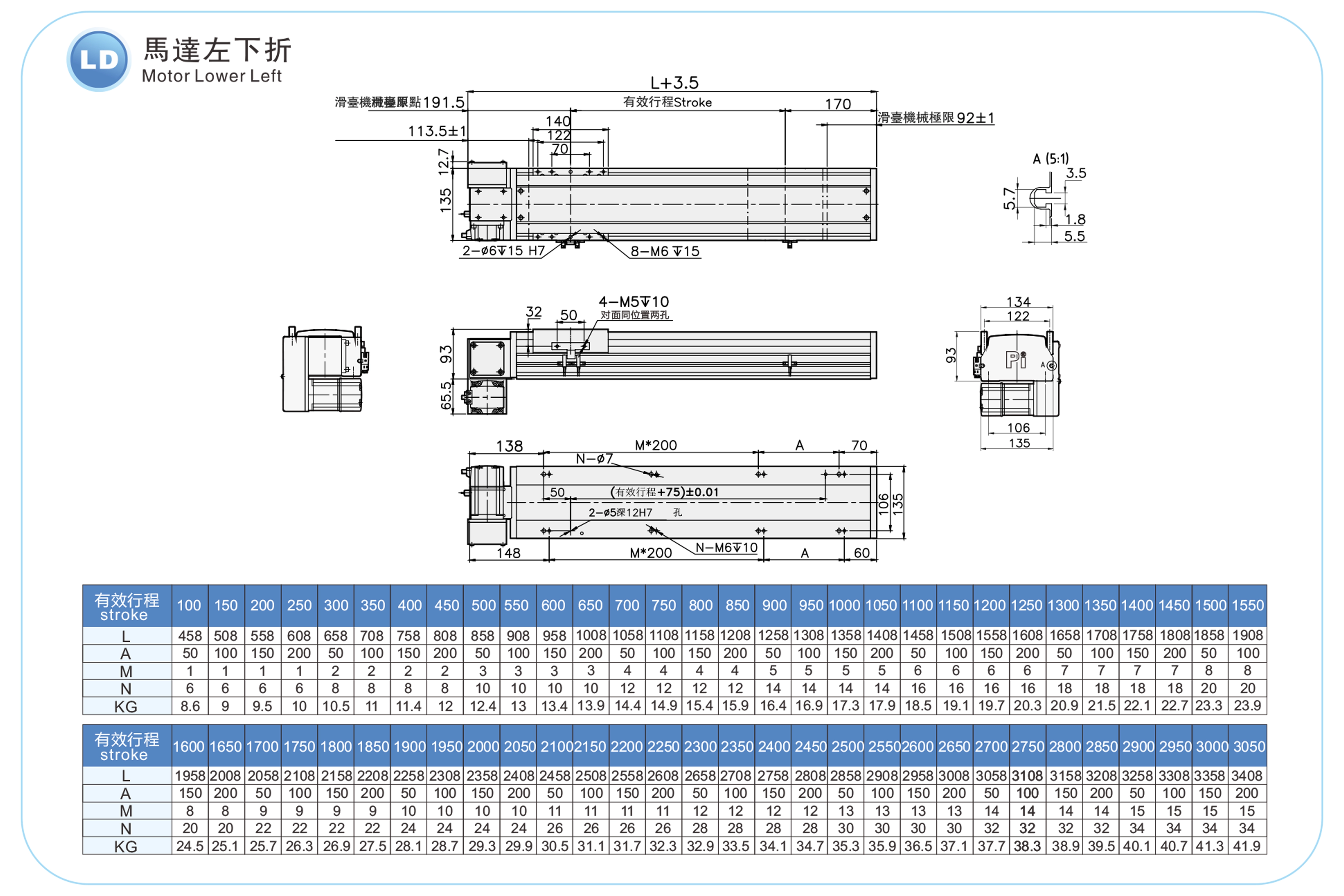ストロークピッチ(mm)100~3050mm/50mmピッチ
