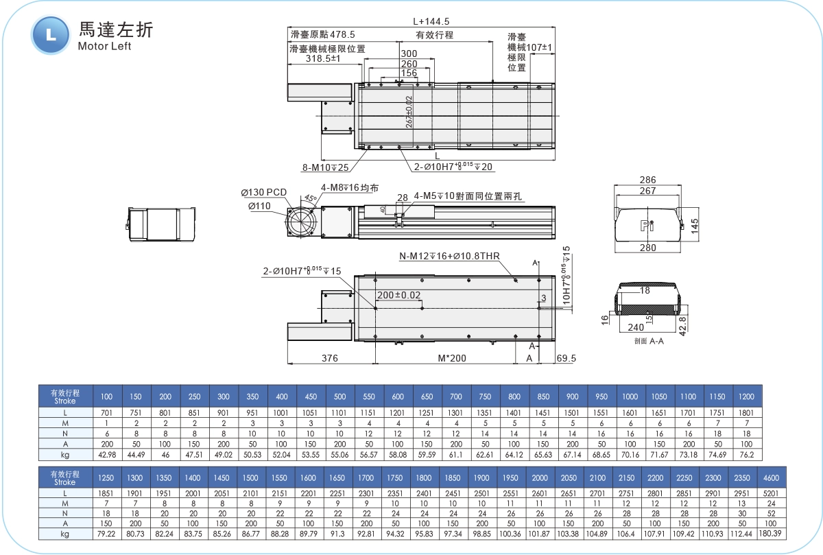 | ストロークピッチ(mm) | 100~4600mm/50mmピッチ | ||