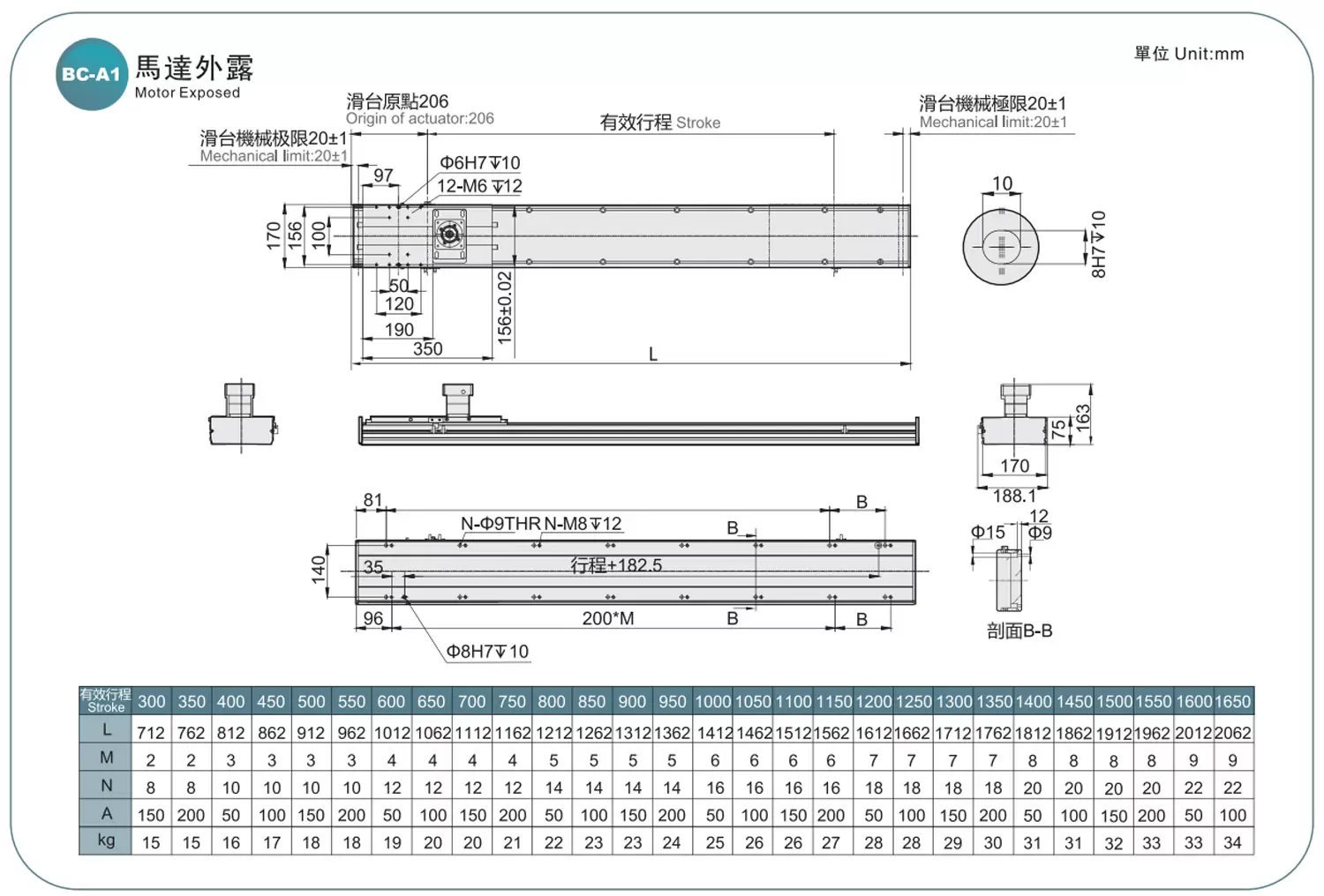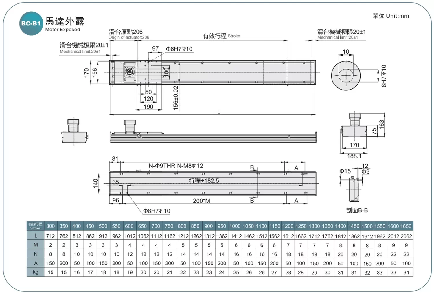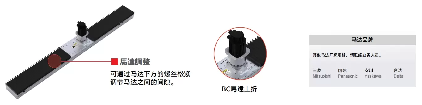 スチールベルト保護により、異物がスライドテーブルに直接落下するのを防ぎます。スライドテーブル内の最大ストロークは1500mmに達します。多方向モーターの取り付け位置は自由に選択でき、機械設計の柔軟性を高めます。様々なブランドのサーボモーターと組み合わせることができます。